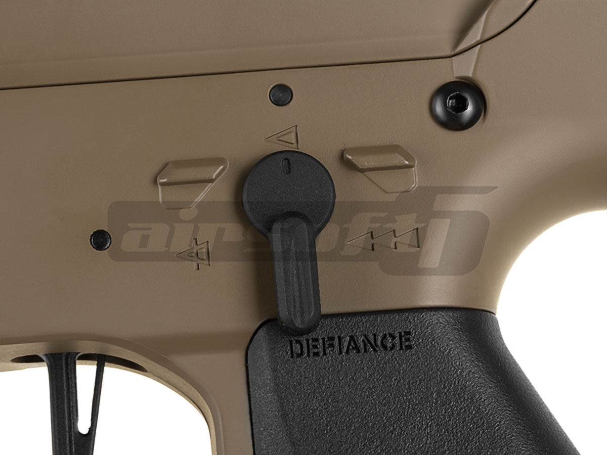 Partea interesanta este gearbox-ul, in care au investit multe resurselor pentru a oferi un produs final de calitate superioara. Aliajul din care este realizata carcasa este unul foarte rezistent, eliminand din problemele generate de arcurile puternice. Designul gearbox-ului este relativ standard, permitand inlocuirea majoritatii componentelor interne dupa bunul plac. Nu se putea spune ca am pasit in secolul urmator decat daca replica este dotata arc usor inlocuibil. Producatorul a dotat replica cu un mosfet simplu pentru a elimina arderea contactului existent in urma utilizarii acumulatorilor LiPo si a motorului de mare putere cu care este dotata replica. Viteza proiectilelor este in jur de 115 - 120 m/s masurata cu bile de 0.20g. Teava interna are un diametru de 6.05mm iar camera de hop permite un reglaj fin al nivelului de hopup, datorita insemnelor de pe roata de reglaj.