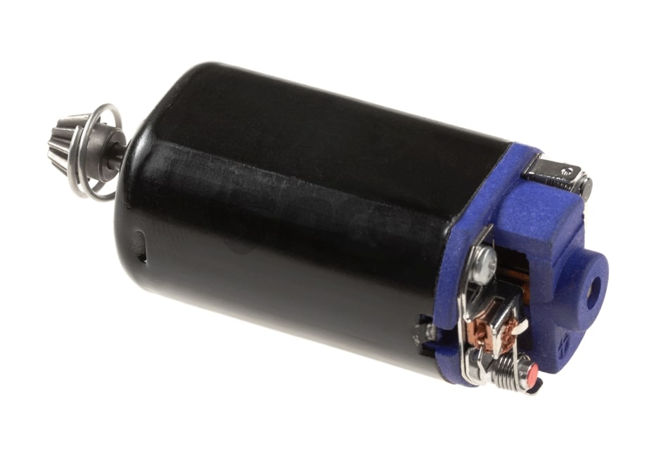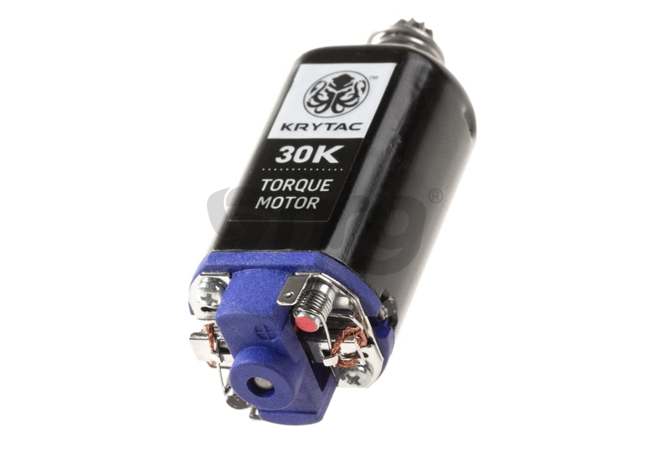 Va prezentam motorul Krytac High Torque scurt 30.000. Acest motor face parte din categoria high end a motoarelor oferite de Krytac. Aceasta serie de motoare se deosebeste cele clasice din mai multe puncte de vedere. In primul rand structura externa este realizata din aluminiu CNC, oferind astfel o rigiditate mult imbunatatita dar si o disipare a caldurii mai eficienta. Rotorul este sustinut de rulmenti in ambele capete, oferindu-i astfel o rezistenta scazuta la rotire atunci cand motorul se va incalzi, eliminand factorul de dilatare al bucselor, intalnite la majoritatea motoarelor normale.