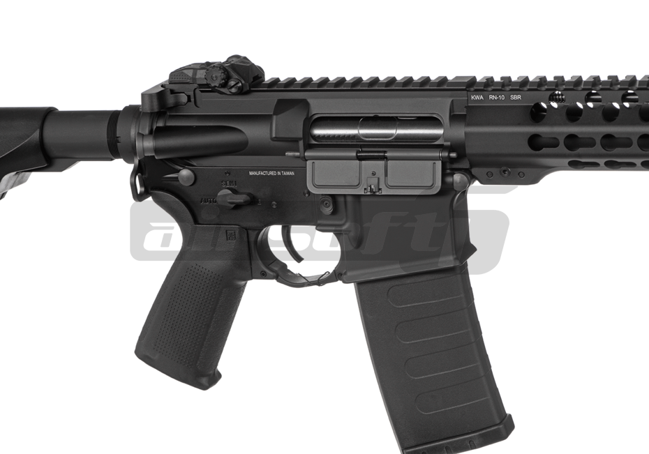 KWA realizeaza o treaba exceptionala in crearea noilor modele Ronin ce ofera un design captivant dar si inonovatie prin noile adaugari precum VPS si gearbox-ul modificat ce permite upgradarea cu mosfet pe tragaci precum cele de la GATE . In partea superioara exista o sina standard ce poate gazdui o gama larga de accesorii de ochire avansate. Fiind un model nou pe piata, deosebit atat ca design cat si performante. Ulucul este de tip Keymod. Segmentele RIS de 50 mm din pachet se monteaza pe uluc in functie de nevoile utilizatorului. Catarile sunt de tip flip up, ele pot fi demontate de pe sina. Selectorul de tir, butonul de eliberare al incarcatorului, parghia de armare sunt ambidextre. Flash hider-ul are un design custom. O curea tactica poate fi montata in montura ambidextra dintre corp si patul replicii. Patul de tip PDW este ajustabil in lungime.