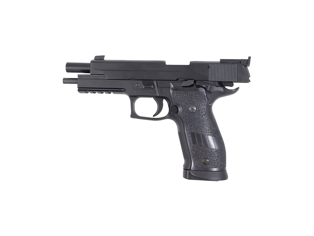 Comercializat de KWC, modelul P226 match copiaza cu acuratele pistolul adevarat. Este fabricat in mare parte din metal respectand functiile armei devarate. In partea din spate exista o siguranta de cocos, ambidextra. Pistolul este de tip Double action insemnand ca in momentul apasarii tragaciului cocosul replicii se armeza dupa care este eliberat declansand mecanismul de tragere.