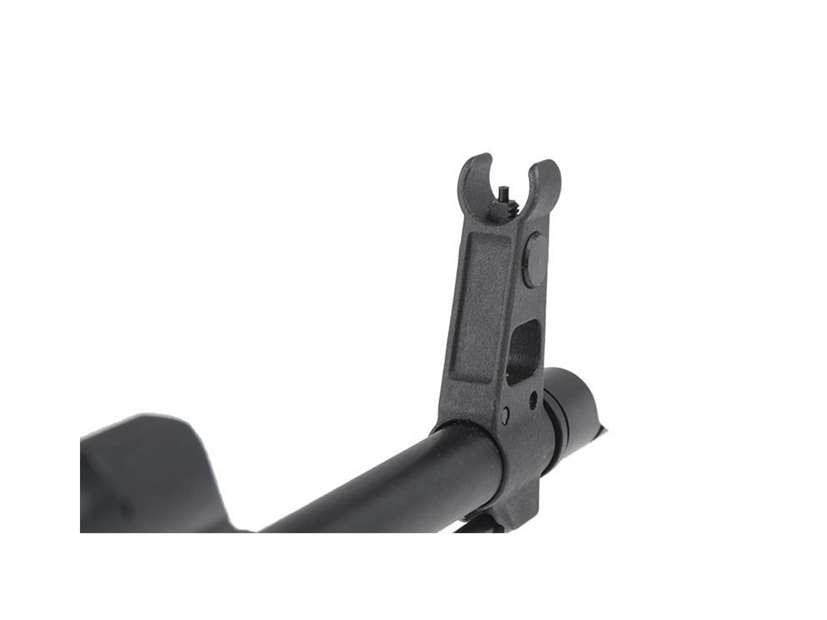 Corpul replicii de airsoft este fabricat din tabla otelita groasa, nituita. Marcajele sunt stantate. Partile de imbinare ale replicii de airsoft sunt fabricate din otel de calitate contribuind la o rezistenta buna. Manerul replicii de airsoft este fabricat din plastic ABS rezistent. Patul este realizat din plastic ABS iar patu leste escamotabil in partea de jos a replicii si este realizat din metal.