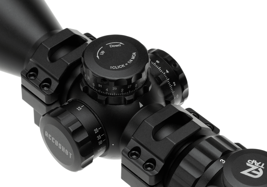 Aceasta luneta este comercializata de Leapers si este destinata armelor de foc, ce au posibilitatea de angajari pe distante mici si medii. Construita pe platforma TS (true strength), complet sigilata si umpluta cu gaz nitrogen, cu rezistenta la socuri, cu proprietati anti aburire anti condens. Are o lungime de 257 mm iar tubul central are un diametru de 30 mm. Obiectivul are un diametru intern de 28 mm permitand astfel o claritate buna a imaginii. Claritatea imaginii mai poate fi aditional reglata cu ajutorul inelului de reglare situat pe ocular. Foloseste un sistem inovativ de imbunatatirea iluminarii EZ-TAP cu mod verde/rosu si mod multi-color in 36 de nuante pentru acomodarea pentru toate conditiile meteorologice si de lumina. Lentilele sunt acoperite cu smarald pentru a obtine o transmisie maxima a luminii pentru o mai buna claritate. Reticulul gravat in sticla este in forma de cert si este gandit sa fie folosit actiunea rapida pe spatii restranse si angajari de precizie in camp de deschis. Paralaxul este presetat la o distanta de circa 90 metri. Unghiul de vedere mare este optim pentru situatiile critice in luptele in spatii restranse. Aceasta luneta prezinta zoom variabil de la 3x la 12x. Reglajul lunetei poate fi usor realizat cu ajutorul butoanelor de dimensiuni mari iar odata realizat acest reglaj, poate fi asigurat cu ajutorul functiei de blocare a butoanelor. In pachet exista 2 inele joase pentru a permite fixarea pe sine standard. Pentru protectia lentilelor in timpul transportului in pachet exista 2 capace de protectie.