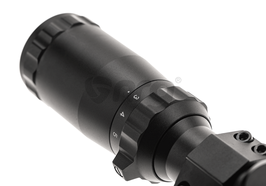 Aceasta luneta este comercializata de Leapers si este destinata armelor de foc, ce au posibilitatea de angajari pe distante medii si lungi. Construita pe platforma clasica, complet sigilata si umpluta cu gaz nitrogen, cu rezistenta la socuri, cu proprietati anti aburire anti condens. Are o lungime de 325 mm iar tubul central are un diametru de 25.4 mm. Obiectivul are un diametru intern de 28 mm permitand astfel o claritate buna a imaginii. Claritatea imaginii mai poate fi aditional reglata cu ajutorul inelului de reglare situat pe ocular. Foloseste un sistem inovativ de imbunatatirea iluminarii EZ-TAP cu mod verde/rosu si mod multi-color in 36 de nuante pentru acomodarea pentru toate conditiile meteorologice si de lumina. Lentilele sunt acoperite cu smarald pentru a obtine o transmisie maxima a luminii pentru o mai buna claritate. Reticulul gravat in sticla este in forma de cert si este gandit sa fie folosit actiunea rapida pe spatii restranse si angajari de precizie in camp de deschis. Paralaxul este presetat la o distanta de circa 90 metri. Unghiul de vedere mare este optim pentru situatiile critice in luptele in spatii restranse. Aceasta luneta prezinta zoom variabil de la 3x la 9x. Reglajul lunetei poate fi usor realizat cu ajutorul butoanelor de dimensiuni mari iar odata realizat acest reglaj, poate fi asigurat cu ajutorul functiei de blocare a butoanelor. In pachet exista 2 inele pentru a permite fixarea pe sine standard. Pentru protectia lentilelor in timpul transportului in pachet exista 2 capace de protectie.