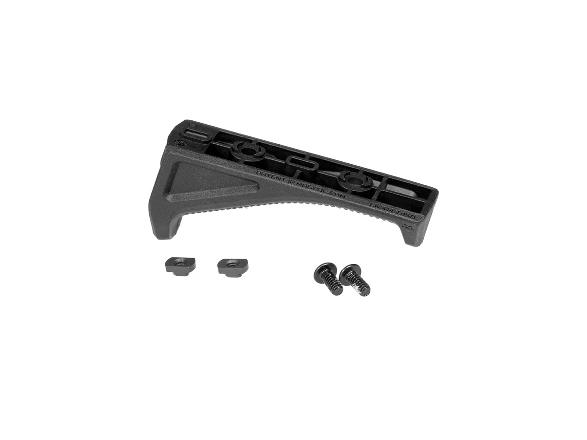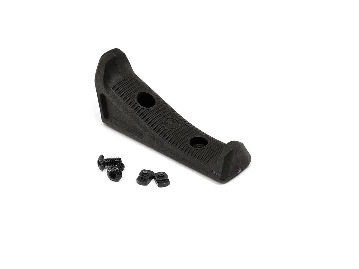 Acesta este un maner frontal unghiular, slim, fabricat din plastic ABS. Sistemul de prindere si asigurare este din metal. Acest maner poate imbunatati mult confortul utilizatorului in momentul exploatarii si controlului replicii. Acest maner se poate monta pe sine tip M-LOK si asigurarea se face cu un doua suruburi ce trebuie centrate in canalele sinei pe care urmeaza a fi montat. In pachet sunt incluse doua suruburi si doua protectii din plastic pentru fixare pe sina M-LOK in functie de preferintele utilizatorului.