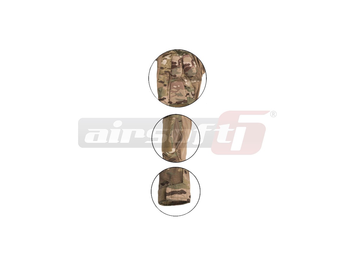 Zona coatelor cat si umerii sunt acoperite cu pad-uri moi ce vor imbunatati considerabil confortul in timpul folosirii unei veste tactice. Gulerul bluzei se inchide cu ajutorul unui fermoar. Pe ambele brate exista sectiuni cu scai pentru a putea fixa patch-uri sau alte insemne prevazute cu un astfel de sistem de prindere.