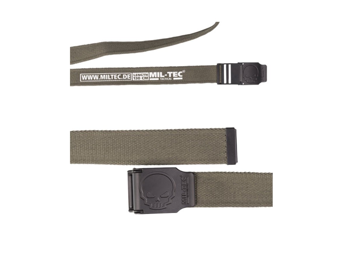 Curea produsa de Mil-Tec fabricata din nailon impletit destinata sustinerii pantalonilor. Aceasta curea este fabricata din Nylon impletit gros extrem de rezistent la uzura. Catarama curelei este fabricata din metal rezistent cu emblema cu craniu . Design-ul sau permite deschiderea si inchiderea curelei extrem de simplu si eficient.