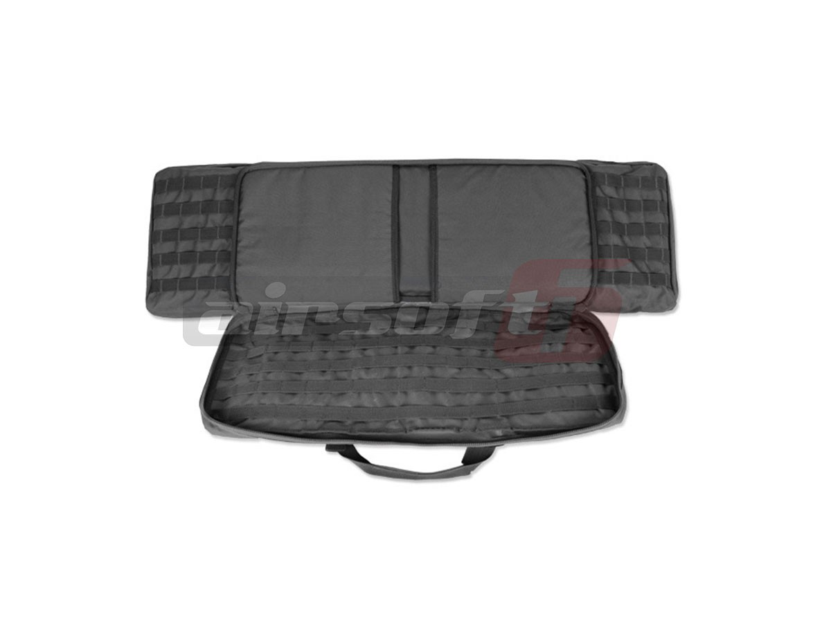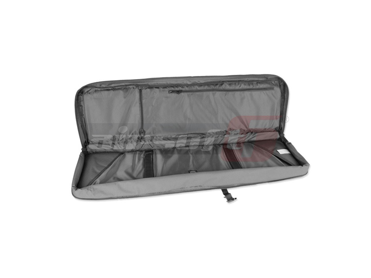 Geanta destinata transportului replicilor si accesorilor de airsoft. Aceasta geanta prezinta 2 compartimente de depozitare. Un compartiment cu o lungimea de 105 cm destinat replicilor de dimensiuni mari si un compartiment cu lungimea de 70 cm pentru pistoale sau replici de dimensiuni mici. Compartimentul mare beneficiaza de inca doua buzunare interioare, foarte incapatoare pentru diferite accesorii si de sisteme de sustinere pentru asigurarea replicii principale. Compartimentul de dimensiune mai mica, odata deschis, veti sesiza impartirea lui in doua segmente acoperite pentru depozitarea in siguranta a replicii secundare sau a incarcatoarelor, grenadelor, statilor, etc., totodata acest compartiment beneficiaza de prindere tip molle. In partea exterioara a compartimentului de 70 de cm putem observa 3 pouch-uri ce servesc ca surplus de depozitare pentru diversele unelte ale unui practicant de airsoft, asigurate de cleme reglabile. In partile laterale ale pouch-urilor gasim sistem de prindere tip molle.