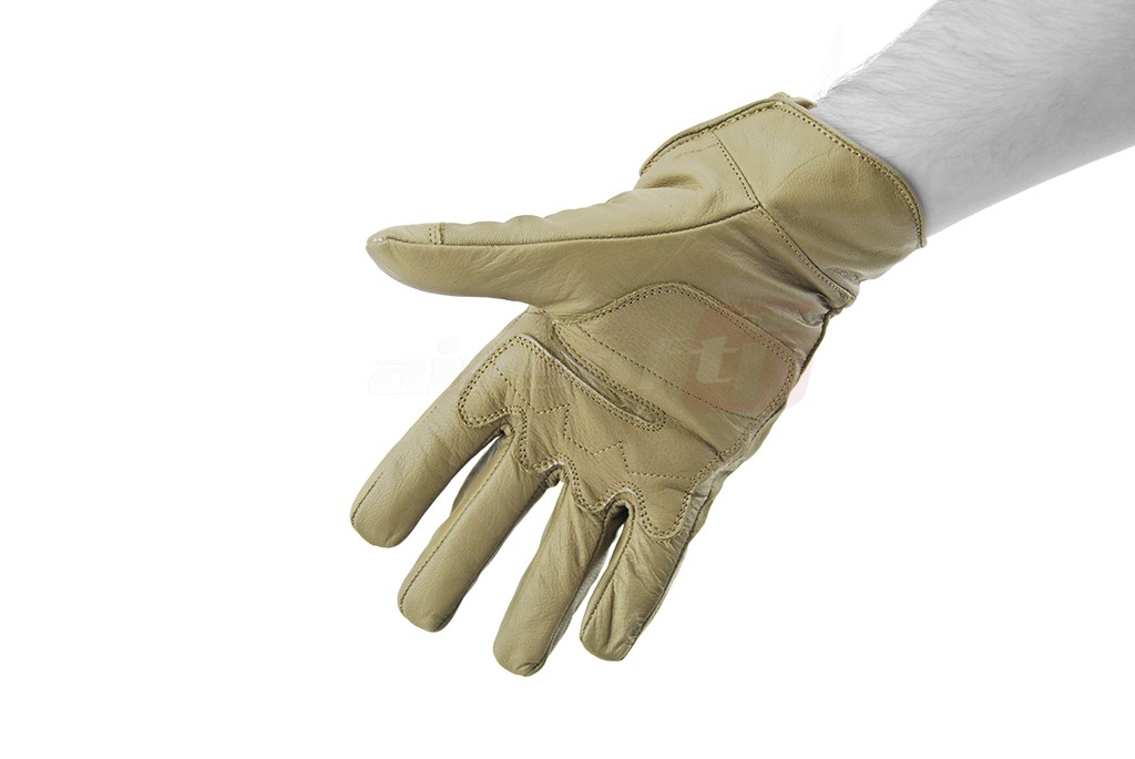 Aceste manusi fabricate de catre Mil-Tec au un design special conceput pentru protectia monturilor si a incheieturilor degetelor. Monturile sunt fabricate din plastic rezistent cu forma anatomica pentru imbunatatirea confortului. Exteriorul este fabricat din piele naturala de calitate pentru a proteja degetele si a rezista impotriva uzurii. In interior, captuseala este fabricata din material nylon pentru a imbunatati si mai mult rezistenta manusilor. Pe toata suprafata manusilor exista sectiuni de material pentru ramforsare. Incheieturile manusilor sunt prevazute cu arici pentru a putea fixa ferm manusile pe maini.