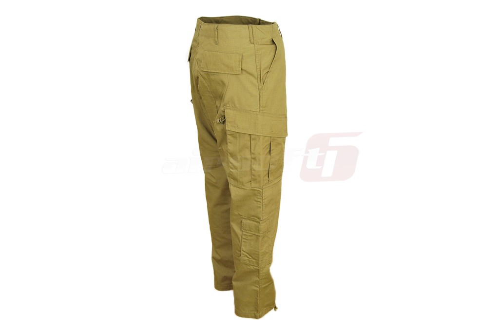 Acest pantalon reprezinta partea inferioara a costumului ACU sau pe larg Army Combat Uniform. Acest model de costum a aparut in anul 2004 cu intentia de a inlocui modelul BDU sau Battle Dress Uniform. Constructia si designul sau sunt conform reglementarilor armatei americane. Amplasarea buzunarelor si marimea acestora dar si croiala pantalonului si elementele de reglare fac acest articol vestimentar usor de purtat si exploatat. Materialul este compus in egala masura din bumbac si nylon, cu design ripstop. Ripstop-ul este un material special conceput pentru a preveni extinderea unei posibile rupturi.
