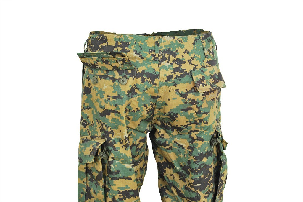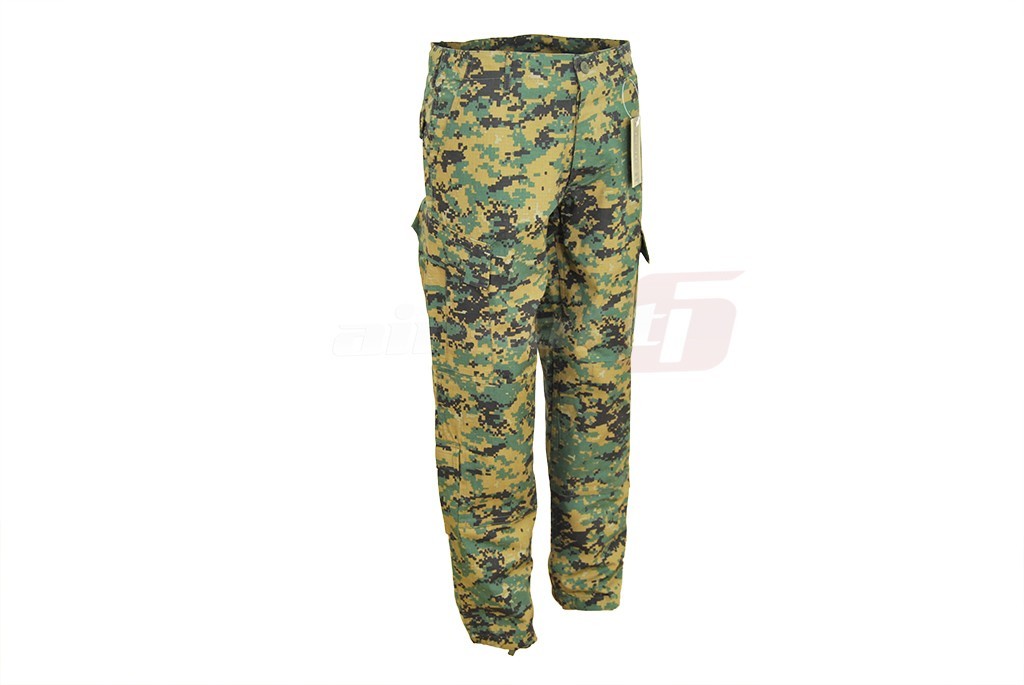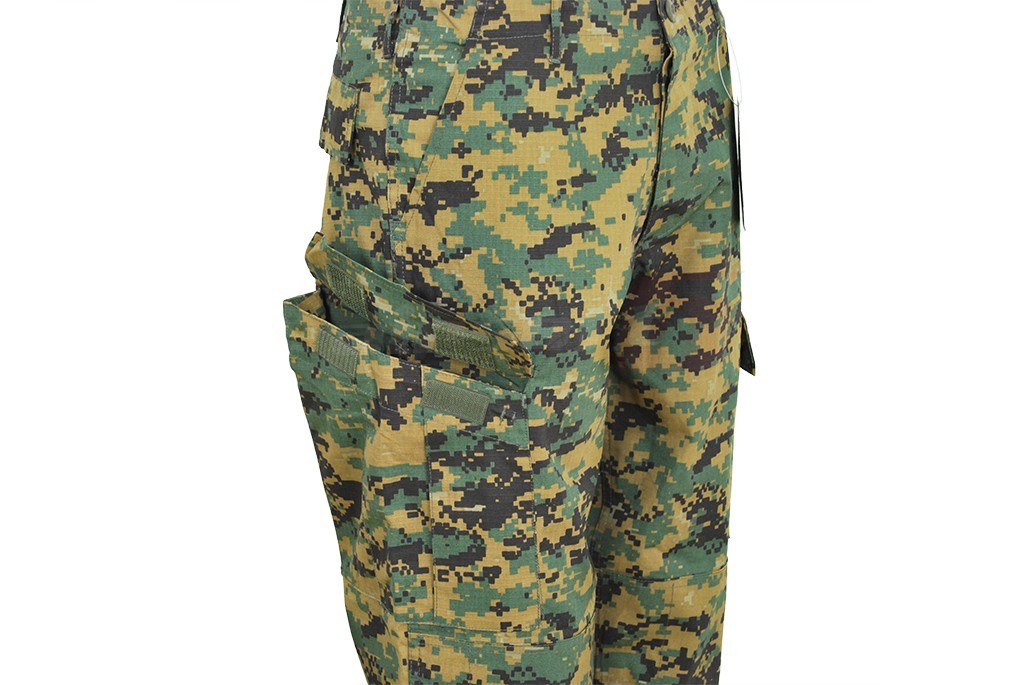 Acest pantalon reprezinta partea inferioara a costumului ACU sau pe larg Army Combat Uniform. Acest model de costum a aparut in anul 2004 cu intentia de a inlocui modelul BDU sau Battle Dress Uniform. Constructia si designul sau sunt conform reglementarilor armatei americane. Amplasarea buzunarelor si marimea acestora dar si croiala pantalonului si elementele de reglare fac acest articol vestimentar usor de purtat si exploatat. Materialul este compus in egala masura din bumbac si nylon, cu design ripstop. Ripstop-ul este un material special conceput pentru a preveni extinderea unei posibile rupturi.