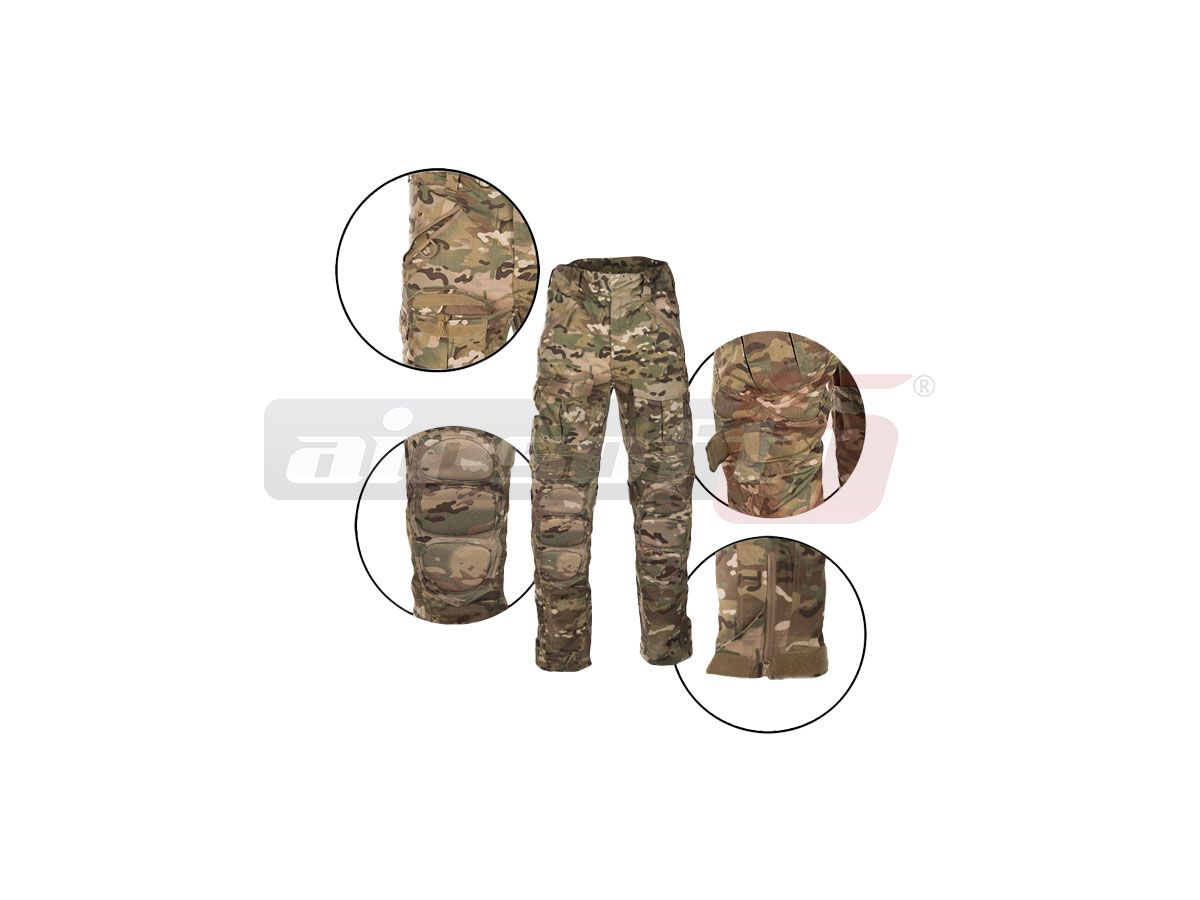 In partea gleznei, pantalonii sunt prevazuti cu sectiune de scai si fermoar pentru ajustarea dimensiunii. In zona genunchilor exista incorporate in tesatura, pad-uri moi pentru protectia genunchilor. In spatele genunchilor exista, asemenea gleznelor, sectiuni cu scai pentru ajustarea dimensiunii cracului.