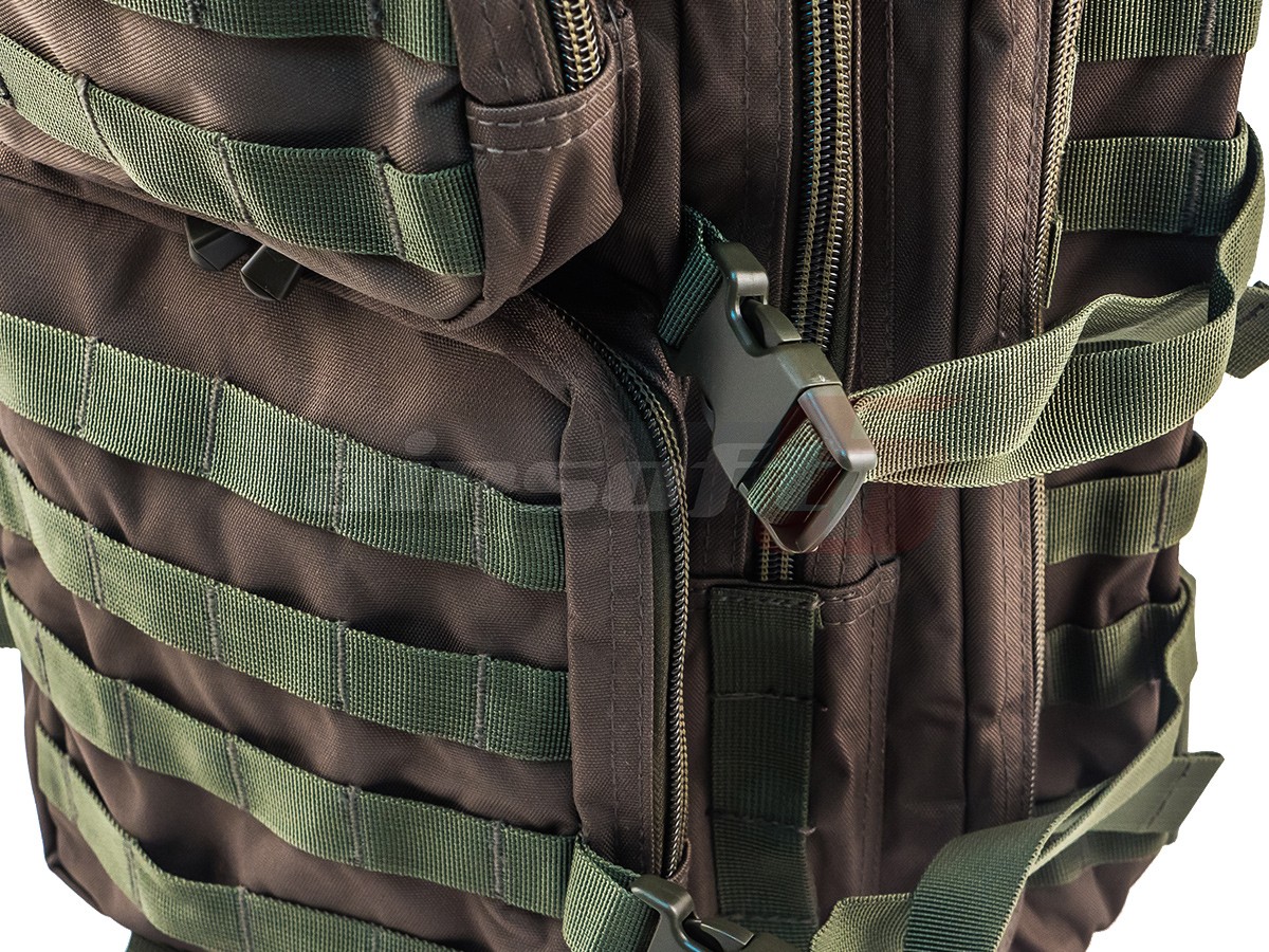 Rucsac tactic marca Mil-Tec destinat actiunilor militare. Acest rucsac este fabricat din Nylon 600D rezistent, captusit cu material plastic impermeabil. Are o capacitate impresionanta de 36L iar compartimentarea este bine distribuita. Bretelele sunt reglabile iar in partea centrala exista un sistem de prindere intre ele pentru o mai buna asigurare a rucsacului in caz de actiuni fizice intense. Tot pentru asigurare exista o curea in jurul taliei, reglabila prevazuta cu carabina rapida.