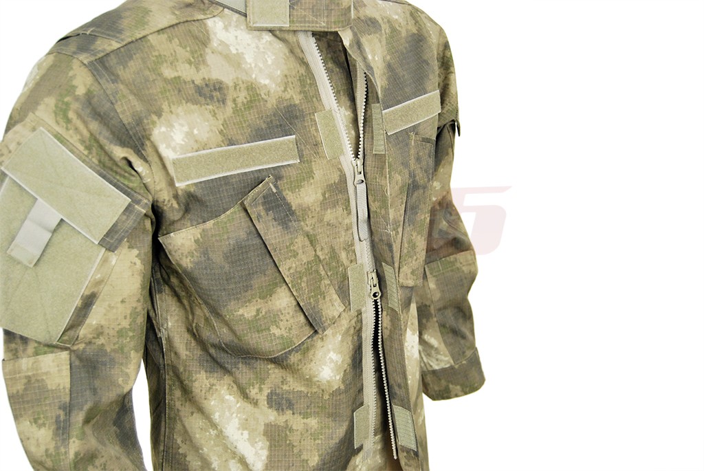 Acest veston reprezinta partea superioara a costumului ACU sau pe larg Army Combat Uniform. Acest model de costum a aparut in anul 2004 cu intentia de a inlocui modelul BDU sau Battle Dress Uniform. Constructia si designul sau sunt conform reglementarilor armatei americane. Amplasarea buzunarelor si marimea acestora dar si croiala vestonului si elementele de reglare fac acest articol vestimentar usor de purtat si exploatat. Materialul este compus in egala masura din bumbac si nylon, cu design ripstop. Ripstop-ul este un material special conceput pentru a preveni extinderea unei posibile rupturi.