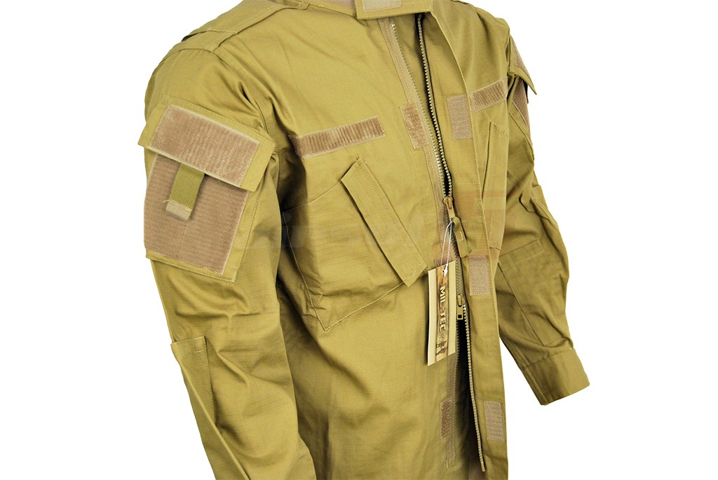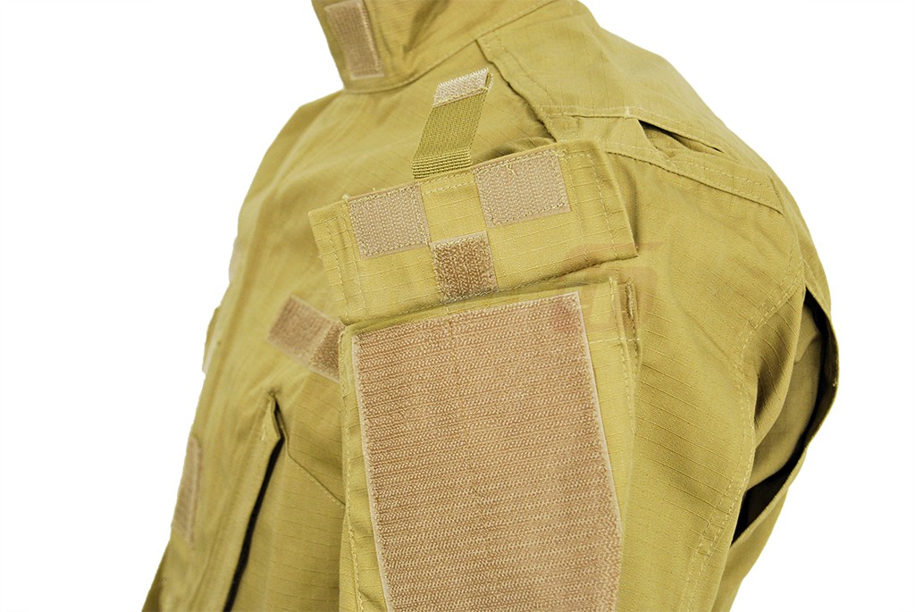 Acest veston reprezinta partea superioara a costumului ACU sau pe larg Army Combat Uniform. Acest model de costum a aparut in anul 2004 cu intentia de a inlocui modelul BDU sau Battle Dress Uniform. Constructia si designul sau sunt conform reglementarilor armatei americane. Amplasarea buzunarelor si marimea acestora dar si croiala vestonului si elementele de reglare fac acest articol vestimentar usor de purtat si exploatat. Materialul este compus in egala masura din bumbac si nylon, cu design ripstop. Ripstop-ul este un material special conceput pentru a preveni extinderea unei posibile rupturi.