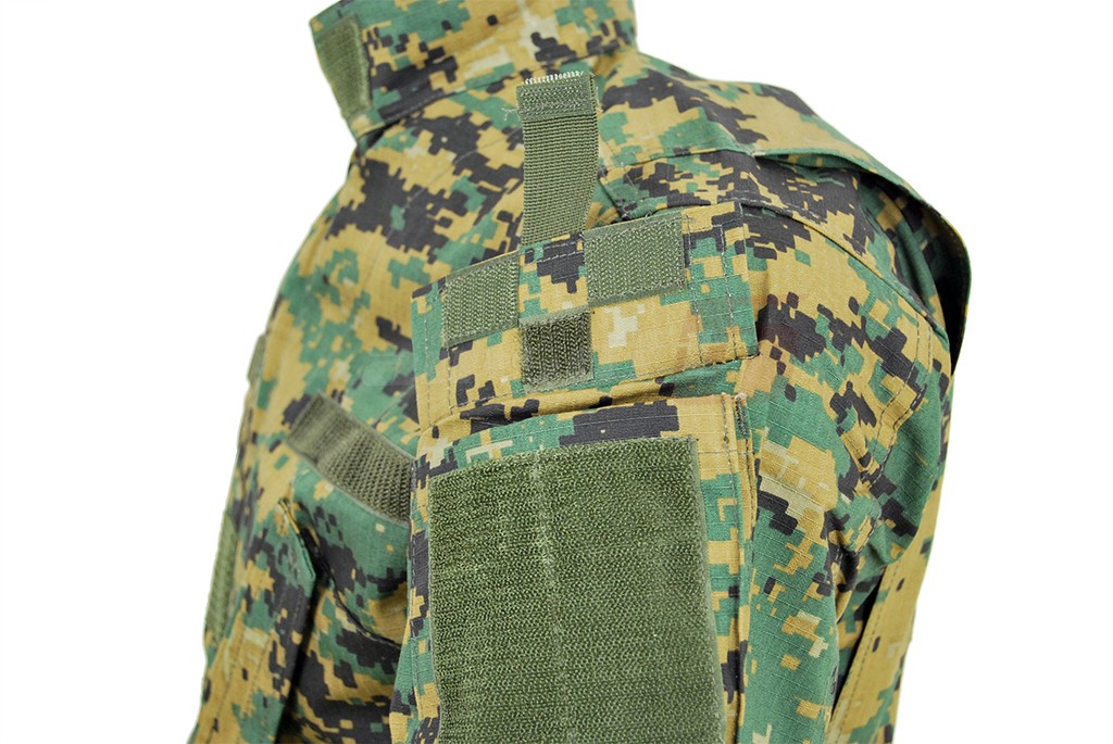 Acest veston reprezinta partea superioara a costumului ACU sau pe larg Army Combat Uniform. Acest model de costum a aparut in anul 2004 cu intentia de a inlocui modelul BDU sau Battle Dress Uniform. Constructia si designul sau sunt conform reglementarilor armatei americane. Amplasarea buzunarelor si marimea acestora dar si croiala vestonului si elementele de reglare fac acest articol vestimentar usor de purtat si exploatat. Materialul este compus in egala masura din bumbac si nylon, cu design ripstop. Ripstop-ul este un material special conceput pentru a preveni extinderea unei posibile rupturi.
