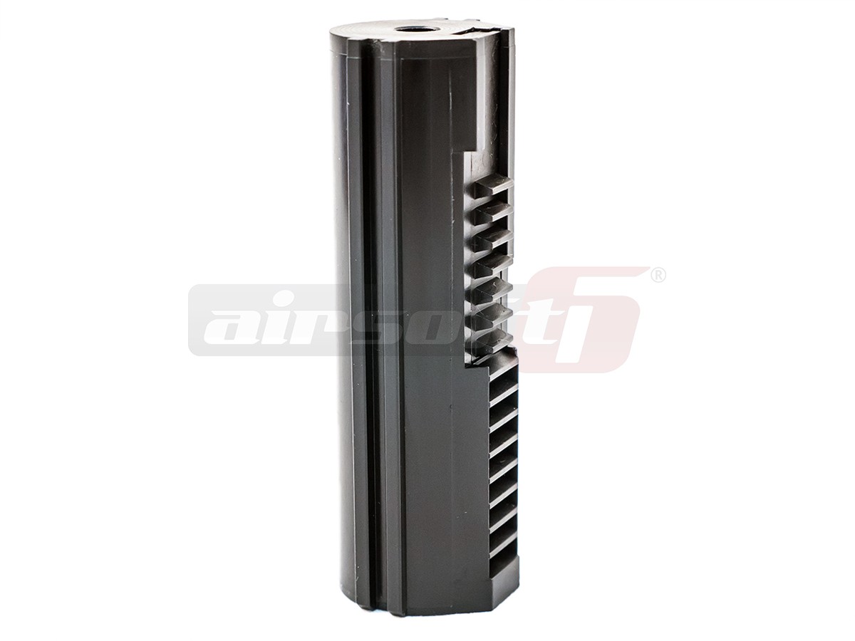 Acest piston oferit de Prometheus este destinat replicilor de tip AEG si este fabricat din poliacetal. Pistonul este dotat cu 7 dinti din otel dur, permitand astfel utilizarea lui pentru modificari de putere mare. Capacitatea acestui piston de a rezista la uzura este foarte buna, putand fi usor comparat cu anumite pistoane cu toti dintii din otel. Va recomandam sa nu umblati in interiorul replicilor de airsoft decat daca aveti o baza de cunostinte in aceasta directie. Chiar daca acest piston este unul dintre cele mai rezistente pistoane de pe piata, exista sanse sa se strice daca este montat gresit.