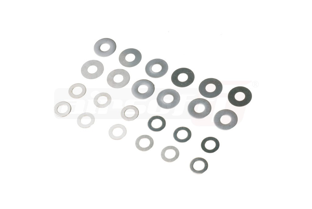 Saibe destinate shiming-ului marca Prometheus. Pachetul contine: 6 bucati 0.1mm, 6 bucati 0.2mm, 6 bucati 0.3mm si 6 bucati 0.5mm. Saibele sunt fabricate din otel iar finisajul este excelent. Shiming reprezinta procesul prin care se stabileste o anumita distanta intre rotile dintate ale gearboxului.
