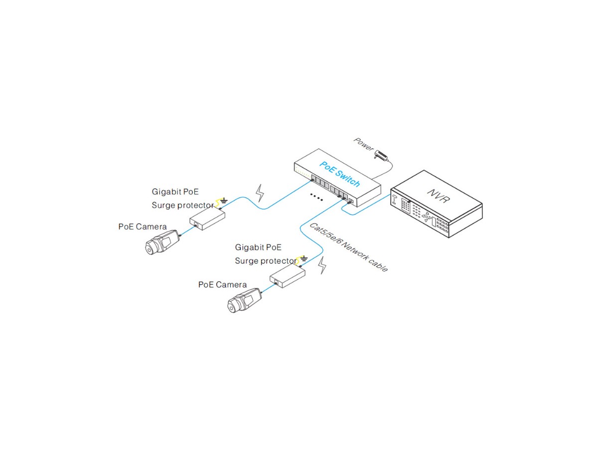 Protectorul de supratensiune este proiectat pentru protectia la trasnet de semnal PoE de retea gigabit, care poate oferi protectie impotriva trasnetului de retea si de alimentare pentru alte dispozitive.
