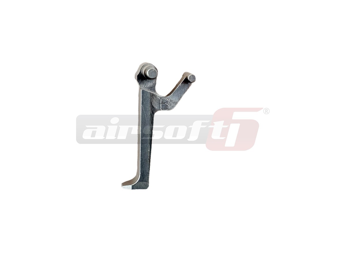 Tragaci destinat platformelor AK cu gearbox versiune 3. Aceasta componenta prezinta o rezistenta asemanatoare otelului si o greutate scazuta datorita aluminiului din care este conceput, fiind menita sa inlocuiasca piesa originala cu scopul de a mari durabilitatea in timp, de a personaliza replica intr-un mod unic si de a oferii utilizatorului un confort deosebit la actionarea tragaciului. Acest tragaci este fabricat din Aluminiu EN AW 7075 cu un strat protectiv anodizat de culoare argintie.