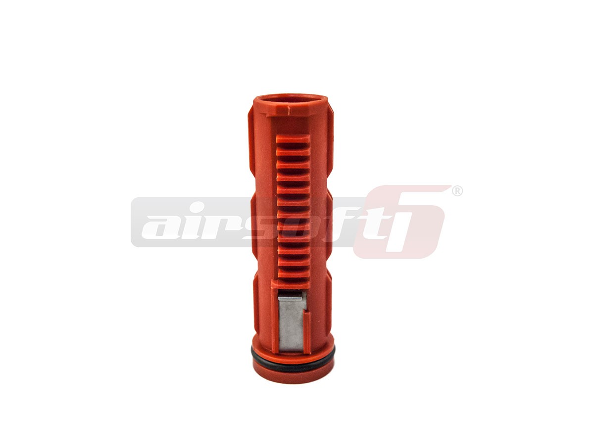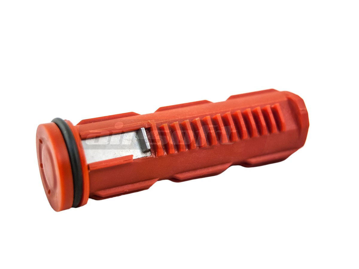 Piston din ABS fabricatie SHS, standard cu 1 dinte din metal. Este usor si rezistent si se recomanda montarea acestuia pentru a inlocui pistonul in cazul unui defect al celui existent sau pentru a folosi la un upgrade de putere. Recomandat este utilizarea lui in gama 90 -110 m/s. Montat corect poate fi utilizat impreuna cu arcuri de pana la 120 m/s.