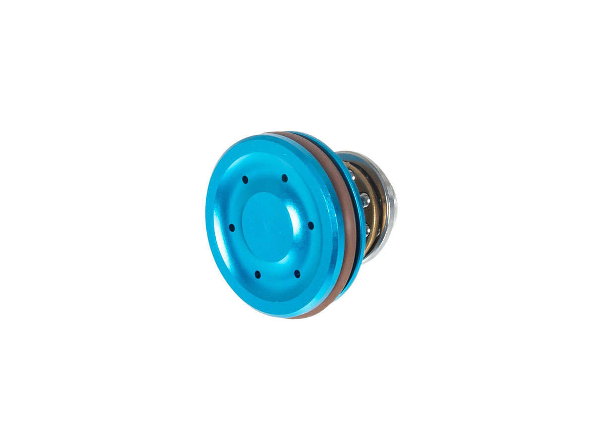 Cap de piston oferit de Specna Arms. Pistonul este fabricat din aluminiu cu ajutorul masinilor CNC, ceea ce garanteaza calitatea inalta a produsului. Este asigurat cu orificii de expansiune a garniturii. Acest cap de piston este prevazut cu rulment menit sa protejeze arcul pe termen lung. Constructia monobloc a acestui cap piston permite utilizarea lui in conditii de upgrade de putere. Imbinarea se realizeaza cu surub prevazut cu filet marunt. Se recomanda la montare utilizarea unei solutii antidesfiletare.