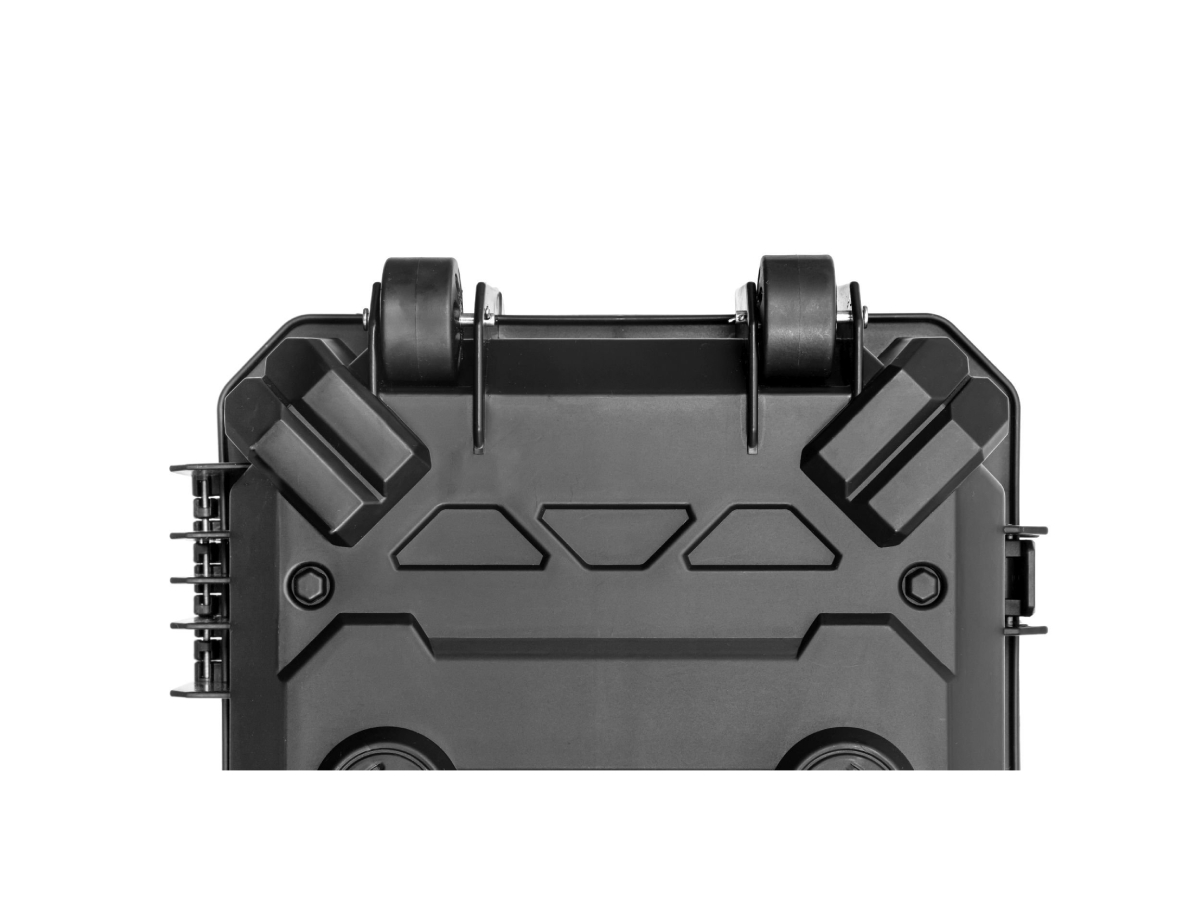 Pe fata cutiei exista o sectiune de velcro pe care poti fixa patch-uri sau alte insigne prevazute cu acest sistem. Cutia se asigura cu 4 balamale si ca sa poata fi transportata mai usor exista 2 manere pe lung si pe lat. Sistemul incorporat de roti iti va permite sa transport cutia mai usor pe suprafete plane.