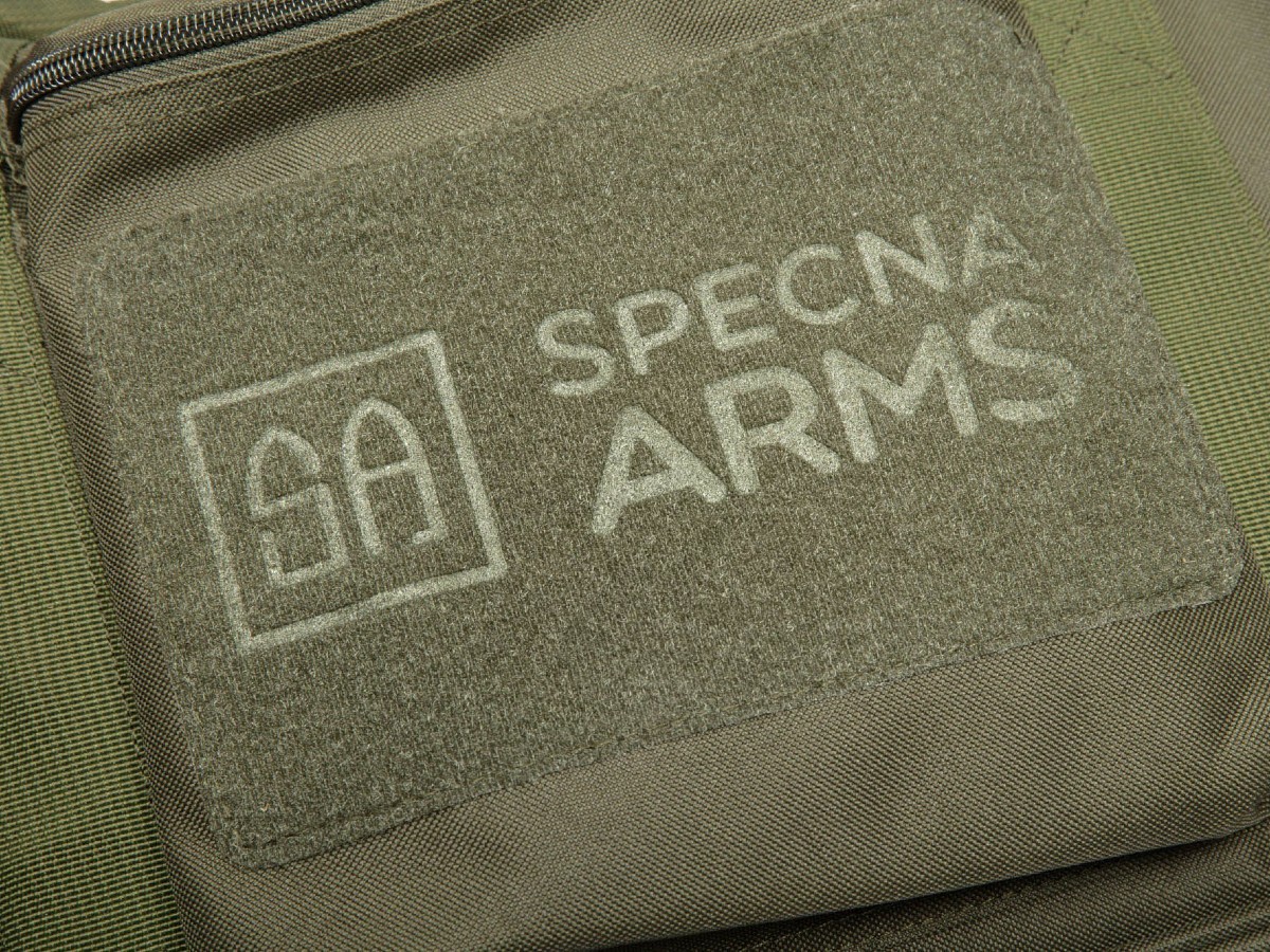 In partea frontala a gentii de transport este prezenta o zona cu scai prevazuta cu logo-ul Specna Arms pe care pot fi atasate patch-uri.