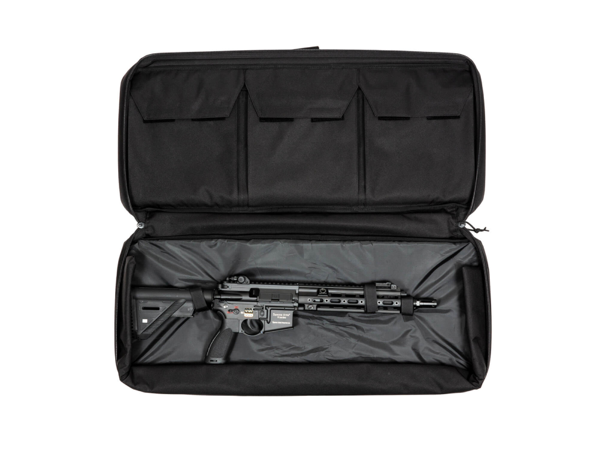 Geanta destinata transportului replicilor de airsoft. Aceasta geanta oferita de Specna Arms este fabricata din nylon. Geanta poate transporta o replica cu lungimea maxima de 870mm. Datorita numeroaselor manere si a umplerii lor cu spuma moale, geanta Specna Arms permite transportul sigur a unei replici airsoft.