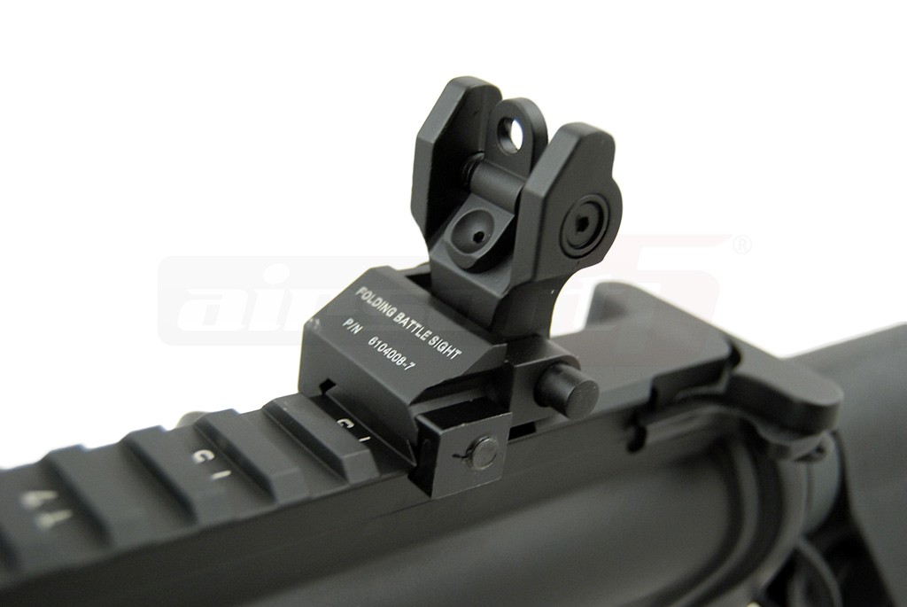 O mare parte a replicii de airsoft este realizata din metal, elementele din plastic ABS sunt manerul si patul replicii de airsoft. Patul este reglabil cu 6 pozitii prevazut cu pad din cauciuc pentru o aderenta imbunatatita iar datorita dimensiunilor lui considerabile pot fi amplasati acumualtori crane. Replica de airsoft este prevazuta cu un sistem de ochire clasic pliabil, pentru a permite utilizarea altor dispozitive de ochire. Atentie, pentru a actiona sistemul de ochire este necesar apasarea butonului din partea stanga.