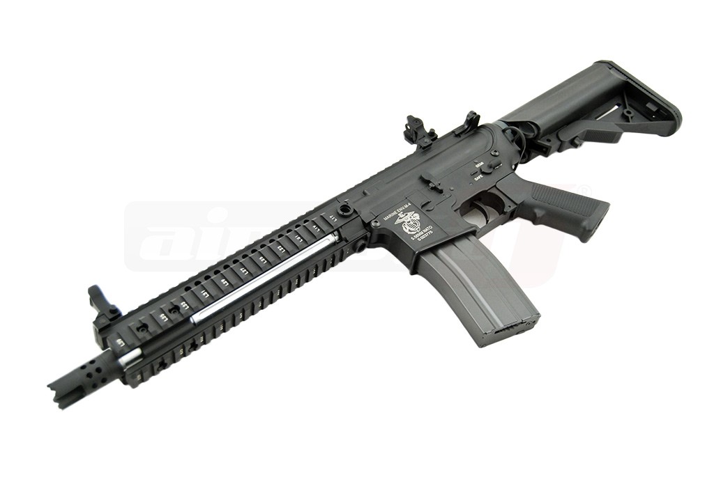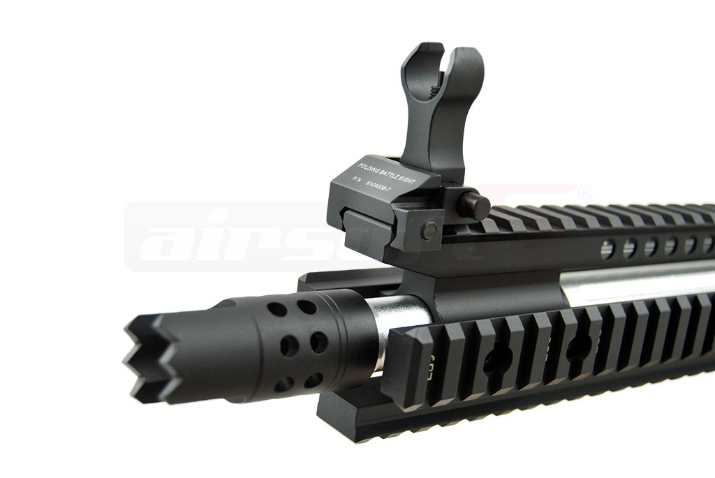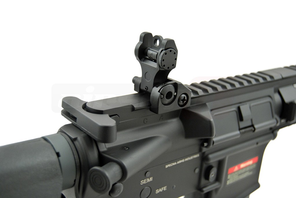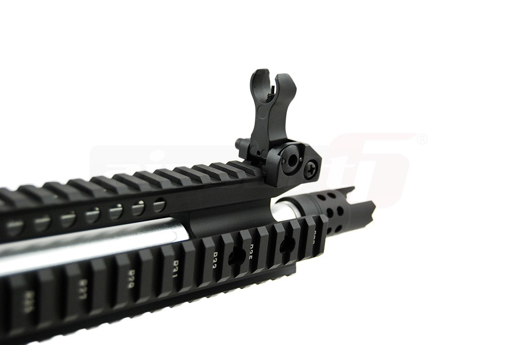 Impresionant.... Nu putem decat sa-i laudam pe domnii de la Specna Arms pentru raportul calitate pret pe care il ofera replicile lor. Exteriorul replicii de airsoft este bine realizat iar materialele utilizate sunt de calitate. Este utilizat aluminiul si aliaje din aluminiu, usurand mult greutatea, manevrabilitatea fiind mult imbunatatita. Designul replicii de airsoft este unul frumos dar si eficient. Sistemul frontal de sine are loc suficient pentru accesorii de toate felurile. In partea superioara a corpului exista o sina standard pe aproape toata lungimea replicii de airsoft ce permite montarea unui game largi de dispozitive optice de ochire.