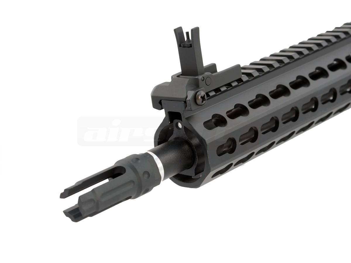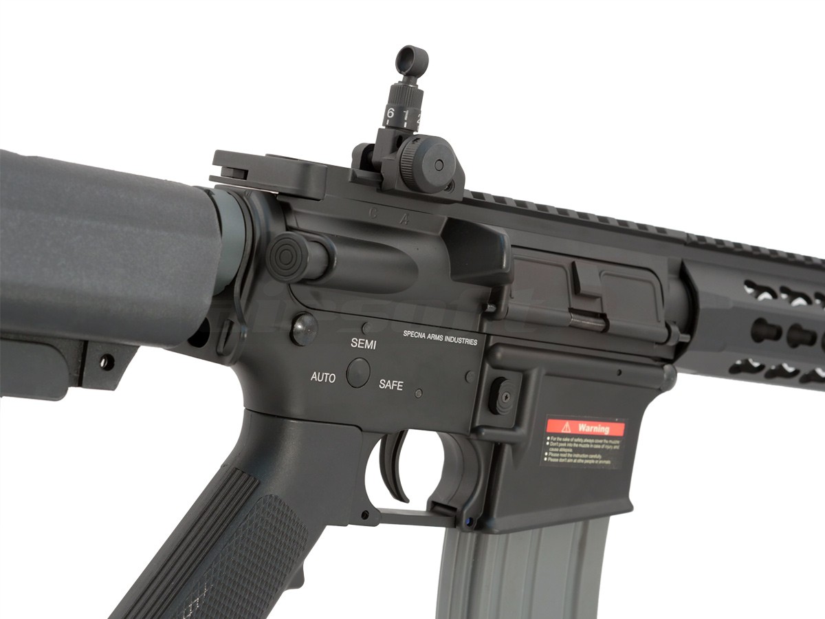 Impresionant.... Nu putem decat sa-i laudam pe domnii de la Specna Arms pentru raportul calitate pret pe care il ofera replicile lor. Exteriorul replicii de airsoft este bine realizat iar materialele utilizate sunt rezistente si usoare. Este utilizat aluminiul si aliaje din aluminiu, usurand mult greutatea, imbunatatind manevrabilitatea. Designul replicii de airsoft este unul frumos dar si eficient. Sistemul frontal de sine copiaza sistemul KeyMod. In partea superioara a corpului exista o sina standard pe aproape toata lungimea replicii de airsoft ce permite montarea unui game largi de dispozitive optice de ochire.
