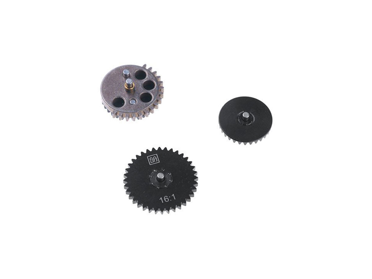 Set de roti oferit de Specna Arms. Fabricate din otel prelucrat CNC, aceste roti sunt potrivite ca si piese de schimb pentru replicile standard. Raportul lor este de 16:1.