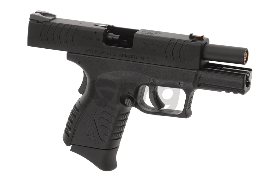 Replica de fata reprezinta varianta scurta a platformei XDM, 3.8, permitand astfel un profil mai mic, putand fi transportat mai usor. Partea inferioara a replicii este fabricata din plastic ABS iar mansonul si teava externa sunt fabricate din aluminiu solid. Sistemele de siguranta sunt multe. In spatele manerului exista o piedica asemanatoare platformelor 1911. Exista o siguranta direct pe tragaci iar pentru situatiile in care este necesara depozitarea replicii de airsoft mai exista o piedica in partea frontala a acesteia. Butonul pentru eliberarea mansonului si butonul pentru dezansamblare se regasesc pe partea stanga iar butonul pentru eliberarea incarcatorului este ambidextru. O functine interesanta este martorul armarii mecanismului intern pozitionat in spatele mansonului. Incarcatorul este din metal cromat. Lungimea pistolului este de 171mm.