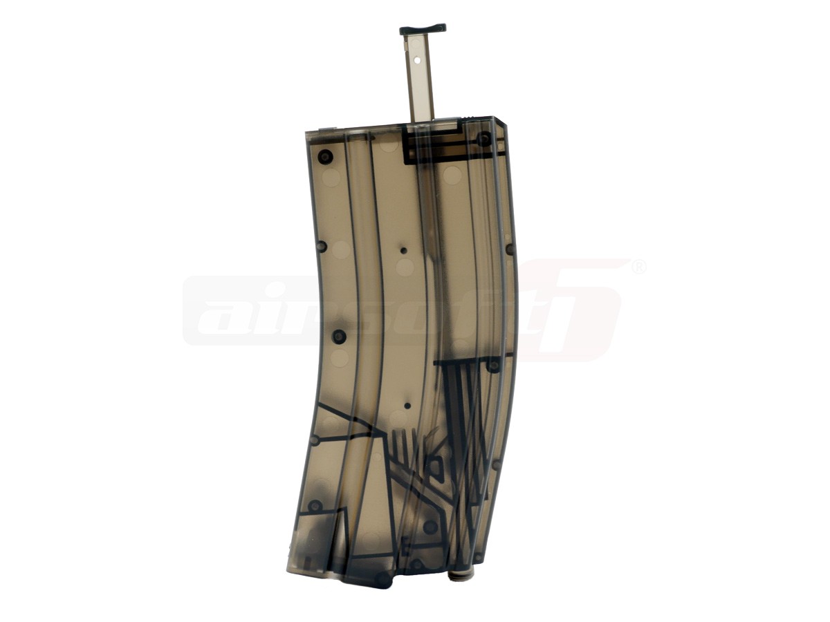Alimentator pentru bile marca SRC de mare capacitate. Este fabricat din plastic transparent pentru a urmari mai usor cantitatea de bilele ramasa. Capacitatea de stocare este de aproximativ 470 de bile.