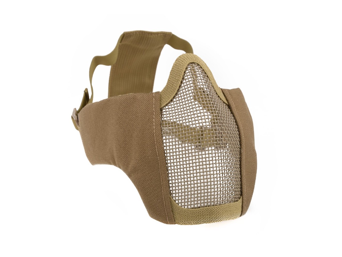 Masca se fixeaza cu ajutorul a unei chingi elastice reglabile. Aceasta masca este recomandata in special pentru jocurile de airsoft in spatii restranse pentru a preveni eventualele victime nedorite in randul soldatilor din prima linie. (dintii)