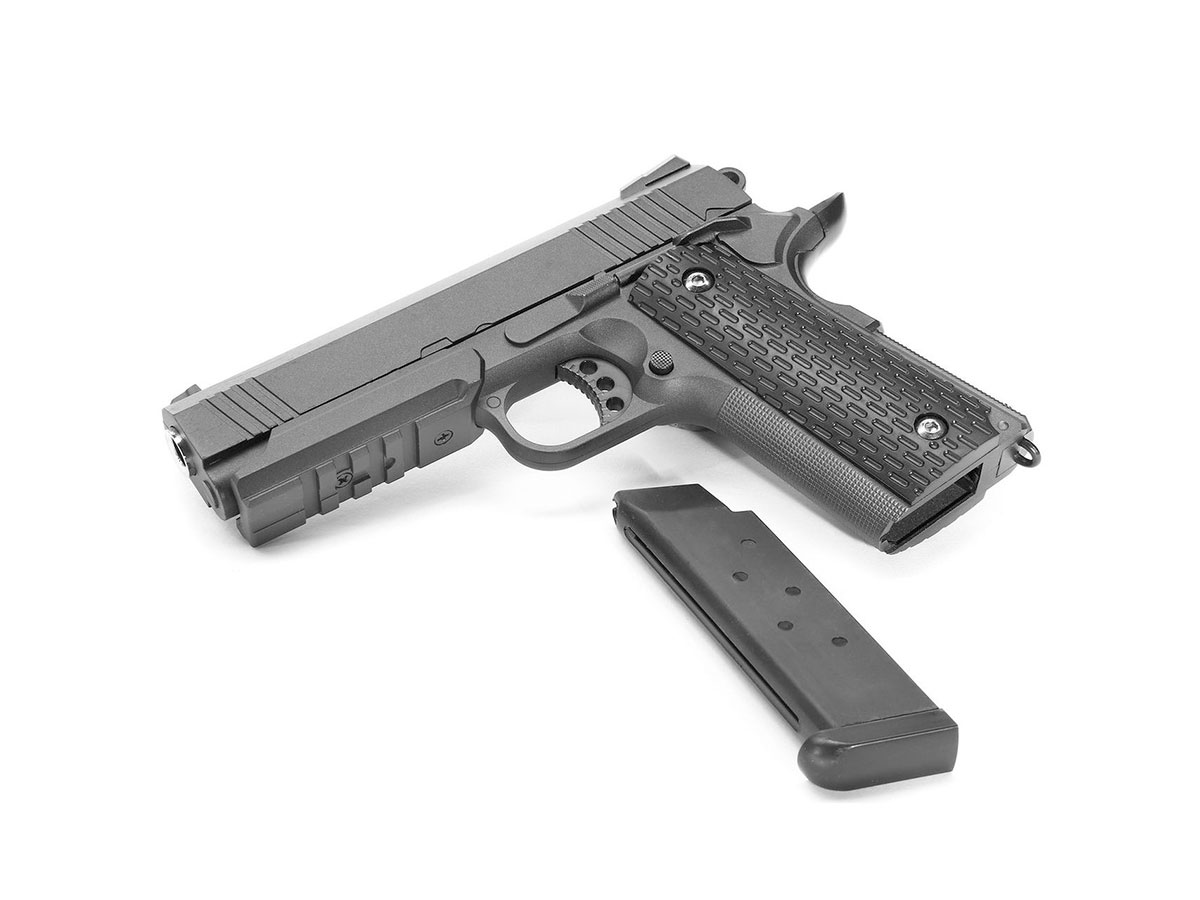 Modelul de fata copiaza intr-o oarecare masura modelul 1911. Este un pistol fara prea multe pretentii, dar care isi va face treaba cu brio. Viteza relativ mica ii va permite sa faca parte din echipamentul unui jucator de airsoft activ si simplitatea de operare ii va oferi o durata de viata destul de mare.