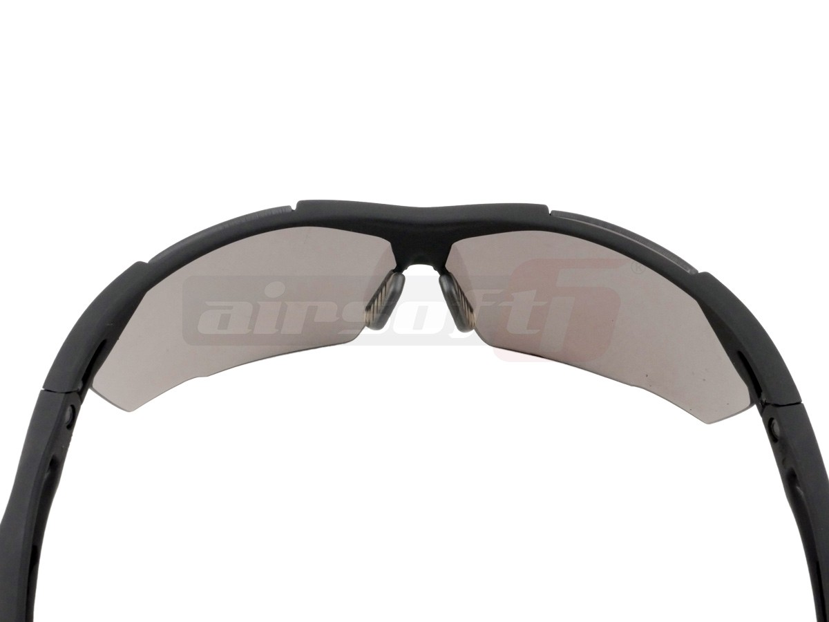 In zona nasului, punctul de sustinere este reglabil si prevazut cu cauciuc moale, confortabil. Designul lentilelor protejeaza o mare parte a globului ocular. Baretele ochelarilor au un profil ingust si sunt acoperite cu cauciuc, protejand urechea in cazul unui impact, iar in jurul ochilor exista protectii din spuma.