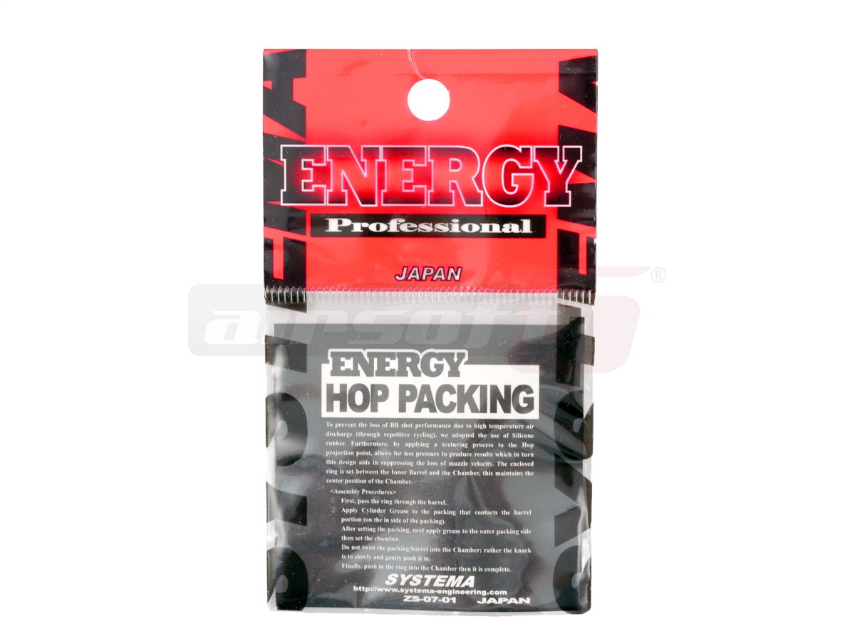 Guma de hopup marca Systema. Este o guma de duritate medie cu o grosime medie a peretilor laterali. Aceasta guma se recomanda pentru inlocuirea gumei standard ce se regaseste in replicile de tip AEG. Materialul din care a fost fabricata, permite utilizarea ei la viteze intre 80 si 130 m/s. Finisajul este foarte bun oferind o precizie buna replicilor.