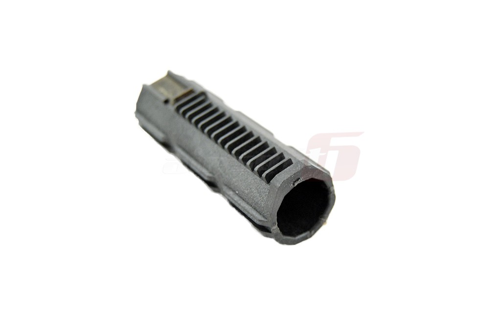Piston marca Systema destinat replicilor de airsoft tip AEG. Acest piston face parte din seria de produse Energy. Aceasta gama este orientata catre usurarea materialelor pe cat posibil fara a face rabat la rezistenta pentru imbunatatirea randamentului. Peretii pistonului sunt grosi iar ultimul dinte este din otel. Sinele laterale sunt prevazute cu santuri pentru usurarea alunecarii si pentru acumularea vaselinei pentru a favoriza ungerea.