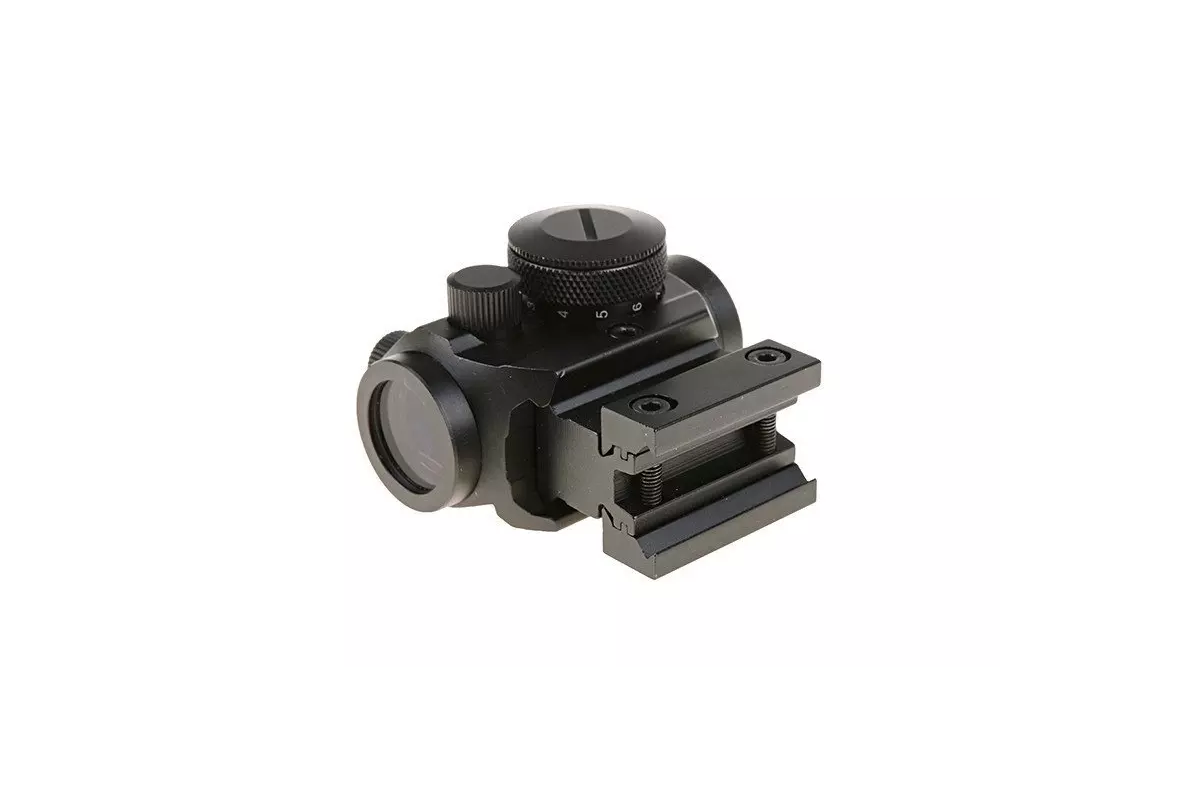 Acest dispozitiv fabricat de Theta Optics permite o ochire mai usoara in momentul utilizarii replicilor de airsoft. Este fabricat din aluminiu, reducand greutatea dar pastrand rezistenta. Se poate monta pe sine standard de tip Picatinny si se fixeaza cu ajutorul a 2 suruburi imbus. In partea lateral dreapta si in partea superioara exista suruburi de reglaj protejate cu capace menite pentru reglajul dispozitivului.