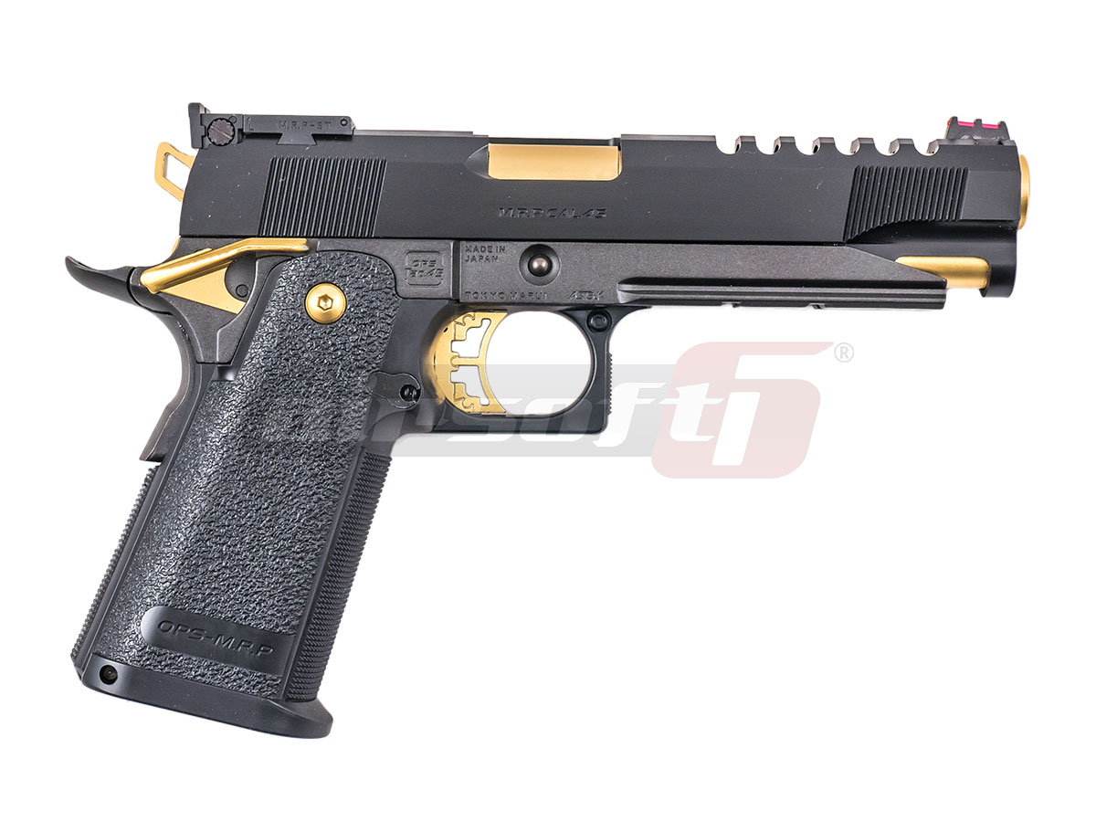 Replica de fata reprezinta modelul HiCapa dar pregatit pentru parada. Finisajele si designul sau ornamental imbunatateste estetic aceasta replica deosebita, ce deja detine titlul pentru cea mai buna platforma de airsoft ale tuturor timpurilor. Pastrand tiparul STI International, producatorul Tokyo Marui foloseste un sasiu central fabricat din metal ce deserveste ca suport stabil pentru toate componentele interne dar si externe. Spre deosebire de modelul standard, sasiul gold match ofera o sina tactica in partea frontala, ce va permite montarea unor dispozitive electronice. Slide-ul prezinta in partea superior-frontala decupaturi pentru a pune in evidenta teava externa aurie dar si pentru a oferi un aspect deosebit. Asa cum sugereaza si denumirea pistolului, "Gold Match", anumite elemente de control precum piedica, cocosul, tragaciul dar si alte cateva, sunt aurite.