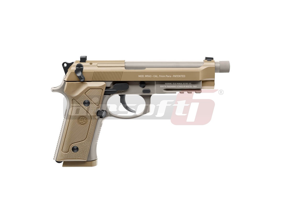 Aceasta replica de airsoft produsa de Umarex copiaza pistolul M9A3 FDE, replicand atat aspectul exterior cat si functionalitatea acestuia. Mansonul este fabricat din metal iar corpul din plastic. Reculul are un sunet puternic si un recul destul de mare. In partea frontala exista o sina pe care pot fi montate accesorii tractice precum lasere sau lanterne. Teava externa este filetata si va permite montarea unui amortizor de 14mm cu sens invers. Siguranta este ambidextra, situata deasupra manerului in spatele mansonului. In partea dreapta exista butonul pentru indepartarea incarcatorului.