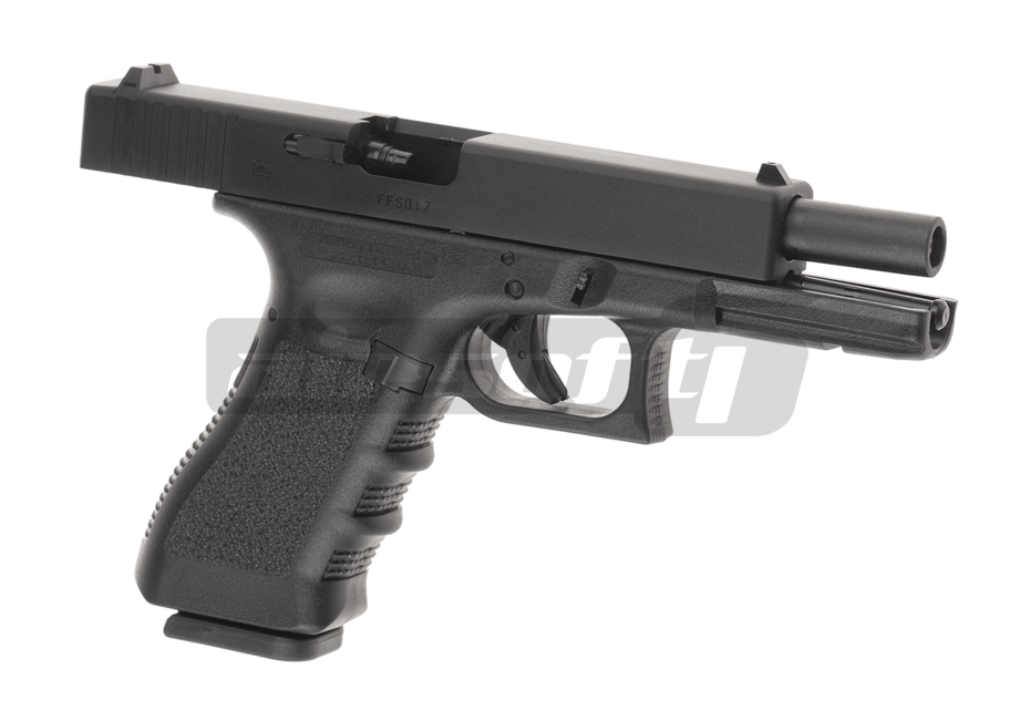Aceasta replica de airsoft este fabricata de Umarex, model G17 cu licenta Glock. Materialele folosite sunt de buna calitate, partea inferioara a replicii de airsoft este construita din nailon pastrand sistemul modular al manerului pentru sporirea confortului. Slide-ul este din metal dur rezistent la uzura.
