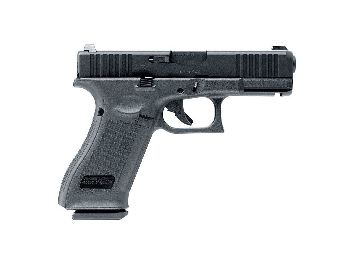 Glock 45 este un pistol de tip crossover ce combina frame-ul de Glock 17 cu slide-ul compact de Glock 19. Seratiile de pe slide si gripul marit denota caracteristicile tipice generatiei 5. Umarex detine licenta Glock, pistoalele fabricate de producatorul german fiind singurele inscriptionate cu marcajele originale.