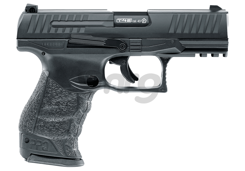 Walther Arms este lider mondial in industria armelor de foc de aproape 130 de ani. Walther a fost renumit in intreaga lume pentru inovatia sa de cand Carl Walther si fiul sau, Fritz, au creat primul pistol semiautomat în 1908. Astazi, spiritul inovator al fondatorilor sai traieste pe masura ce Walther sarbatoreste 125 de ani ca fiind unul dintre cei mai importanti producatori mondiali de arme pentru antrenament, de aparare si de aplicare a legii. PPQ Cal. .43 apartine ultimei generatii de arme de antrenament de varf utilizate atat de autoritati, cat si de militari in scopuri de formare profesionala, luand numeroase premii precum "Bullseye Award" si "Handgun of the Year". Aceasta replica a pistolului Walther PPQ, al carui corp este din ABS si mansonul este din metal, se poate folosi pe post de pistol pentru antrenament. Replica are blowback (recul) avand o precizie ridicata de pana la 10 m. Replica foloseste tuburi de CO2 de 12g, iar in incarcator incap un numar maxim de 8 bile. Replica trage cu 100 m/s cu bilele de cauciuc. Se pot folosi bile de cauciuc, bile de paintball, bile cu creta sau bile cu piper. Pentru acest tip de pistol, a fost creat un incarcator de urgenta, care activeaza tubul cu C02 din interior dupa o apasare puternica pe partea de jos a incarcatorului (acesta se achizitioneaza separat si nu este inclus in pachet).