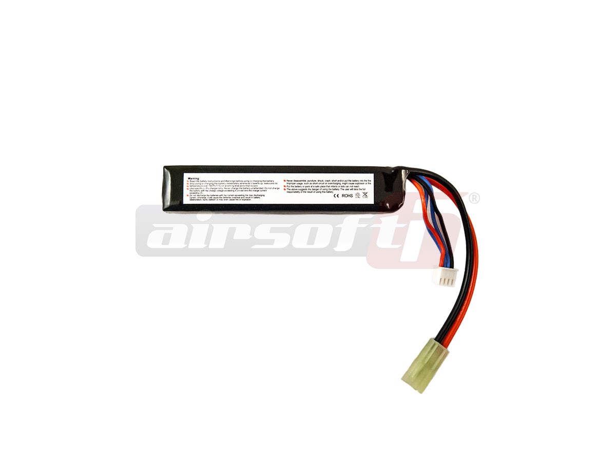 Acumulator LiPo format din 3 celule, forma stick. Tehologia acumulatorului permite dimensiuni foarte reduse ale intregului ansamblu, astfel montarea in spatii destinate bateriei foarte reduse este posibila. Descarcarea acumulatorului de 20C permite o furnizare de curent suficienta necesitatea de curent a replicii.