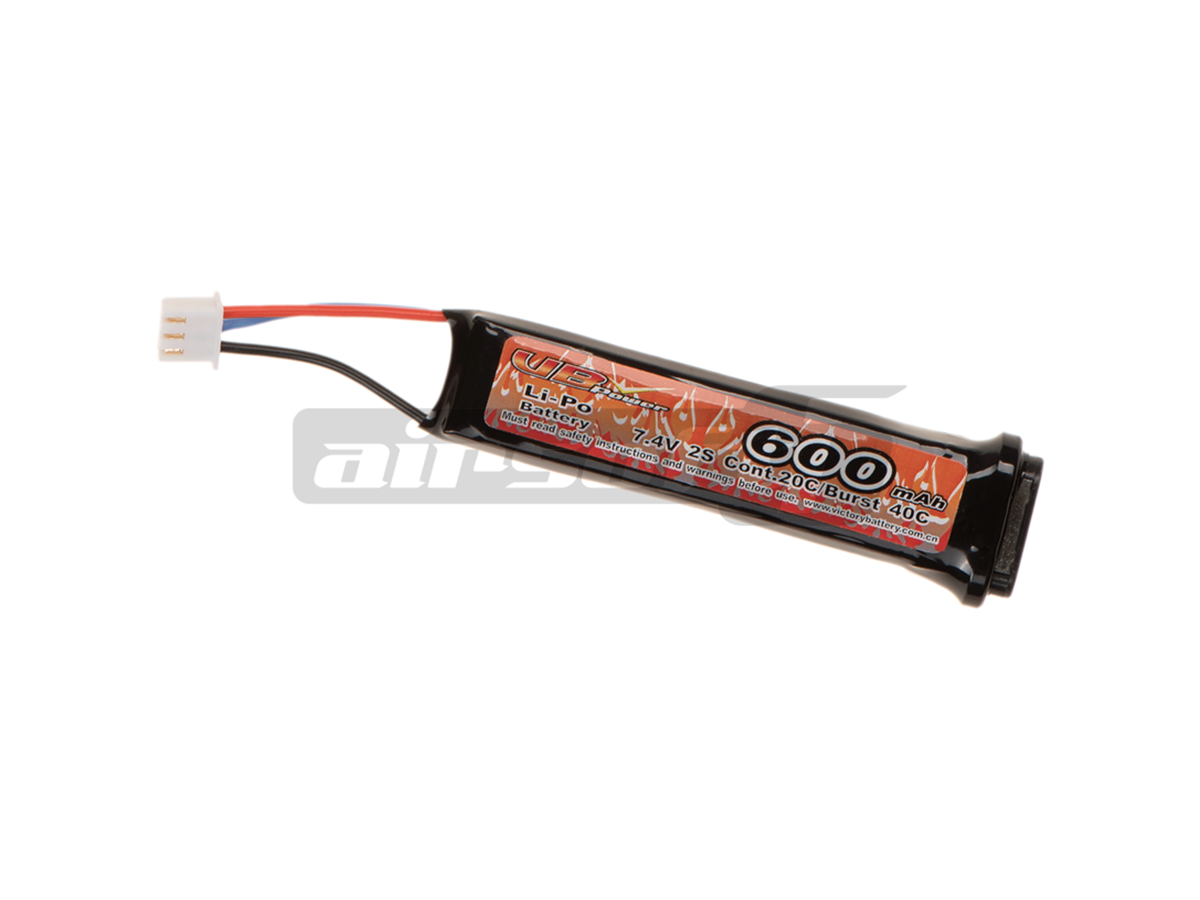 Acest acumulator VB Power este de tip LiPo si este compus din 2 celule ce alcatuiesc un ansamblu compact. Are o tensiune de 7.4V si o capacitate de 600mAh. Acest tip de acumulator este special destinat replicilor de tip AEP, adica pistoalelor electrice. Atentie, acest acumulator nu poate fi utilizat impreuna cu replicile de tip SMG, VZ Scorpion, MP7 si altele. Descarcarea acumulatorului de 20C permite o furnizare de curent suficienta necesitatea de curent a replicii.