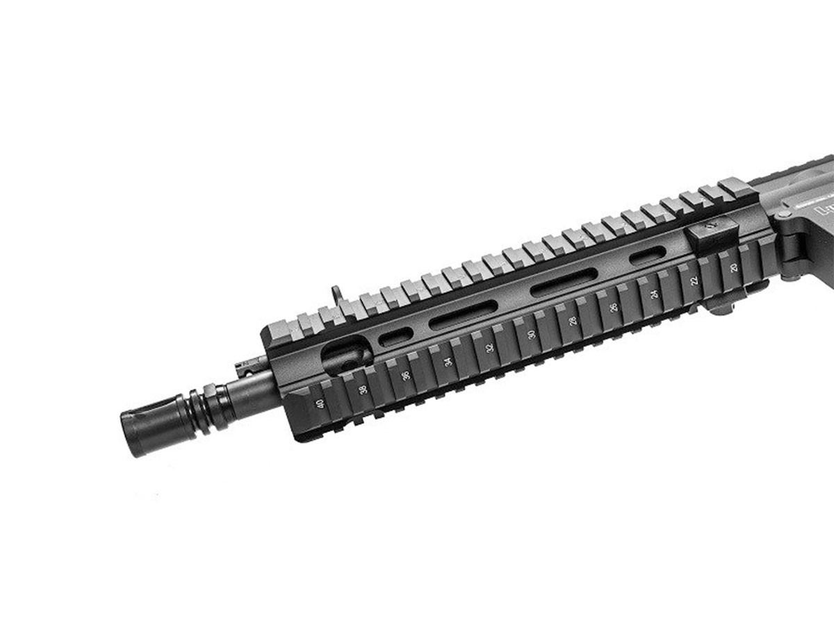 Replica este livrata cu o cutie solida pentru transport si un incarcator mid cap de 320 de bile din polimer. Aceasta replica este dotata cu mufa Tamiya mica. In pachet nu exista un acumulator sau un incarcator pentru acumulator. Replica suporta acumulatori de 7.4V LiPo sau 8.4V si 9.6V NiMh. Nu recomandam folosirea unui acumulator mai mare de 9.6V intrucat gearbox-ul se poate defecta. Recomandam sa utilziati doar bile de calitate superioara si sa nu reutilizati bilele deoarece replica se poate defecta.