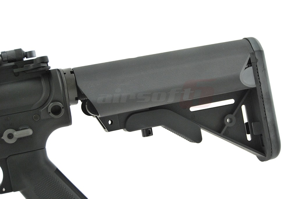 Se poate nota, replica de airsoft asemenea armei reale M4 SR015E3 comenzile replicii; selector de tir, mag catch si bolt catch, sunt ambidextre.