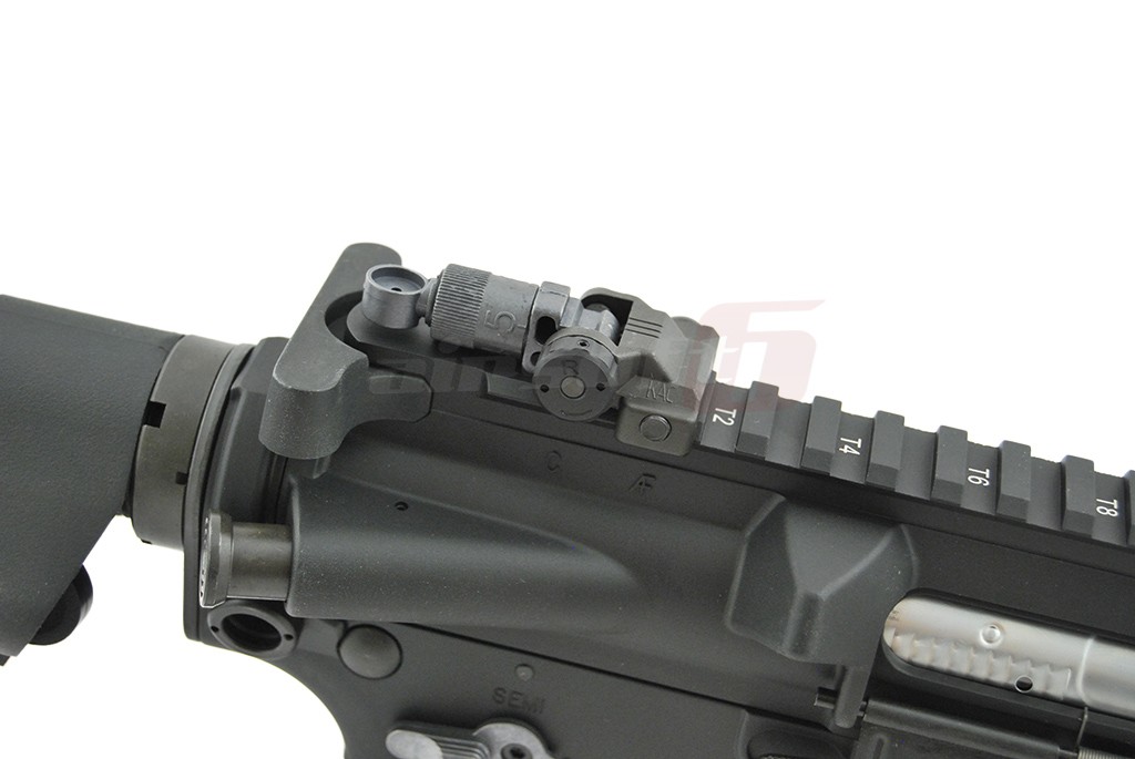 Replica de airsoft este prevazuta in partea frontala cu un sistem de sine de tip free-float model Knight's Armament sau pe scurt RAS (Rail Application System) din aluminiu, oferind o buna posibilitate de accesorizare precum; lanterne, lasere, manere si altele. Pentru atasarea curelei de sustinere, sistemul de sine este prevazut cu 4 puncte de prindere QD ambidextra. Sistemul de atasare continua cu inca 2 prinderi QD deasupra manerului. Existand in total 6 puncte de prindere QD. Aceste prinderi sunt fabricate din otel si sunt incastrate in corpul armei.